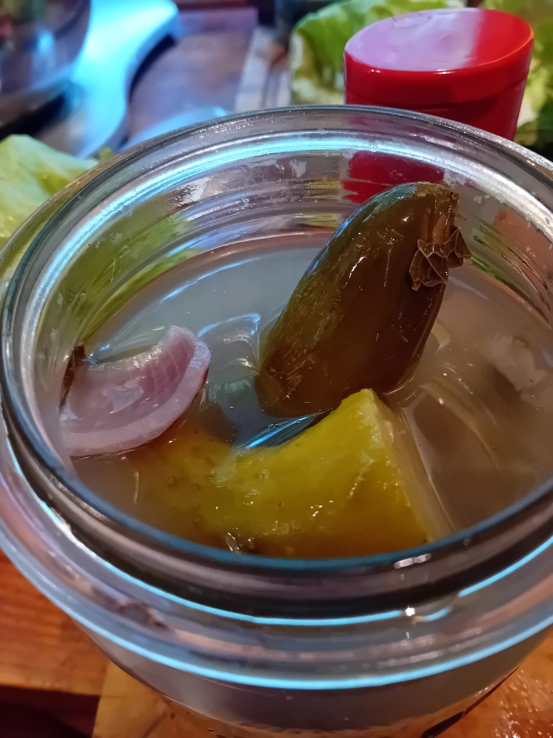 In der Lake schmurgeln dann die Gurken 3 Wochen - länger nicht. Sie sollen noch knackig sein, aber schon den typischen Fermentationsgeschmack aufweisen.